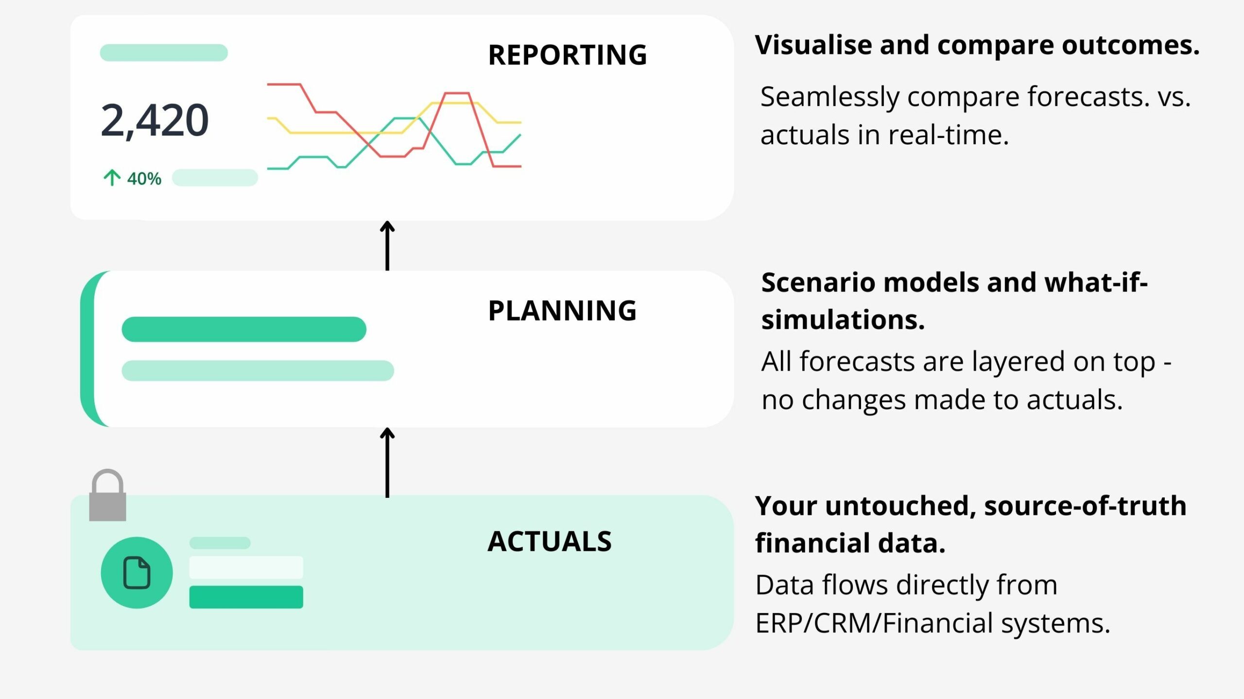 And because the planning layer is linked to real data, your forecasts aren’t theoretical – they’re grounded in the business as it is today.