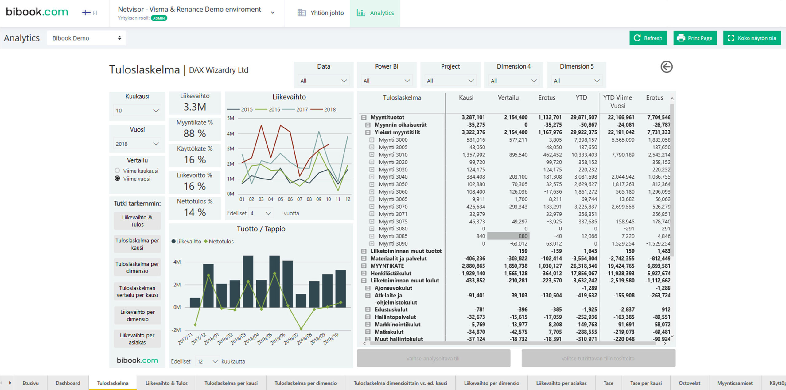 BI-rapporter er visninger i Business Intelligence-systemene, der du enkelt kan dele forretningsdata med andre brukere. Ved hjelp av rapportvisninger kan de økonomiske nøkkeltallene presenteres på en lettfattelig måte. Visningene er interaktive og brukeren kan filtrere og endre analysemetoden selv med bare ett klikk.