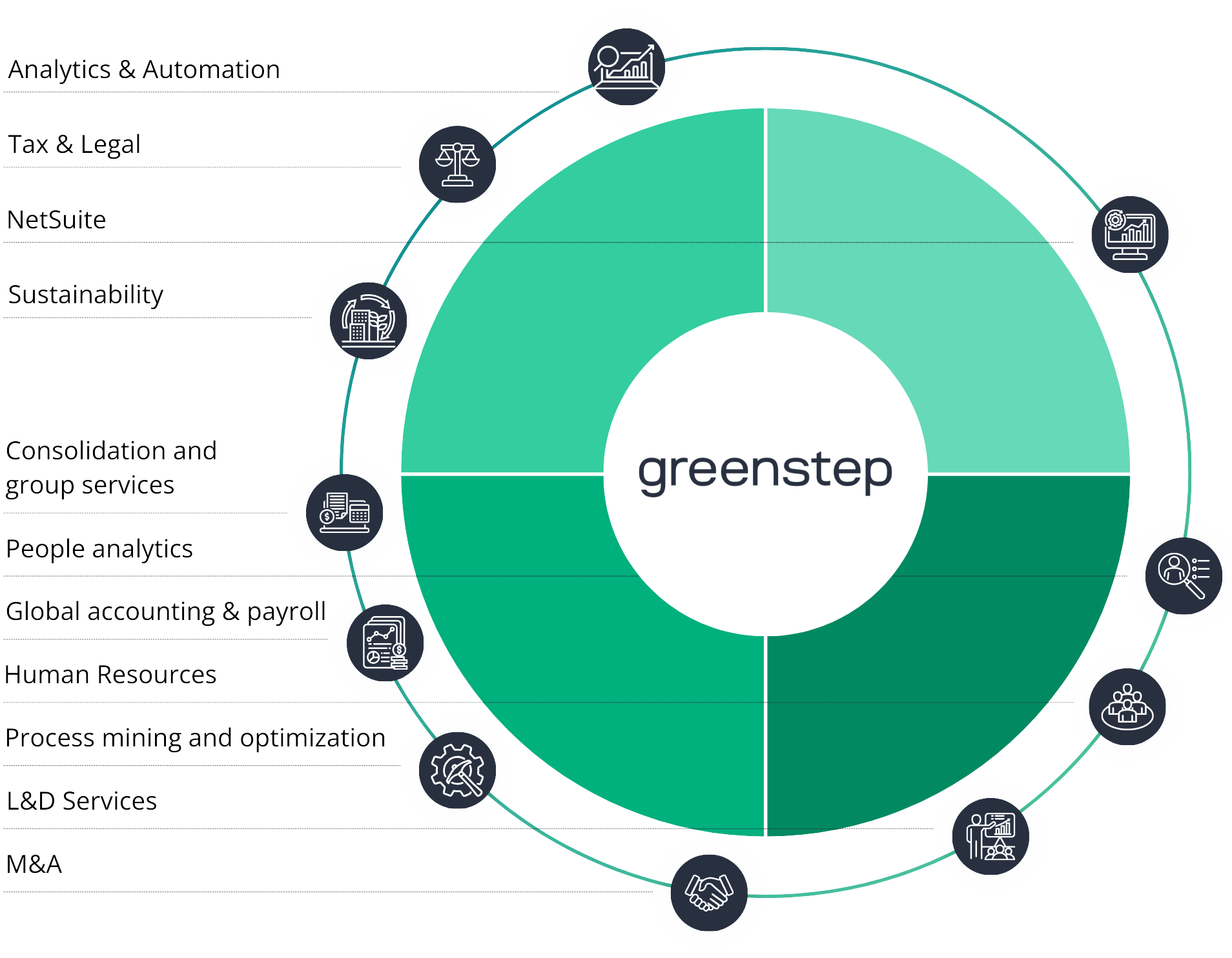 Hos Greenstep tror vi at internasjonal suksess er forankret i datadrevne kulturer som prioriterer mennesker og intelligent beslutningstaking. Enten du søker vekst gjennom organisk utvikling eller strategiske oppkjøp, sørger vi for at alle dine kapabiliteter er tilpasset for å hjelpe deg med å oppnå dine mål. Sammen, la oss frigjøre ditt fulle potensial!
