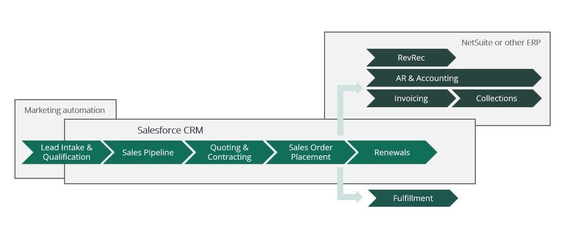Gjennom flere tiår med forskning og utvikling har Salesforce utviklet ledende forretningsprosessløsninger, som kundene kan bruke i stedet for å utvikle sine egne front office-prosesser. Utenom det kan brukere også dra nytte av Salesforces velprøvde strategier for håndtering av potensielle salg, salg og kundestøtte.
